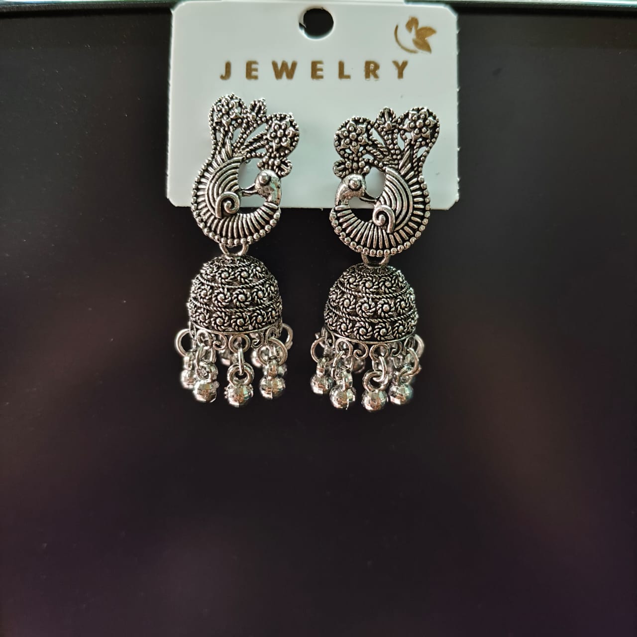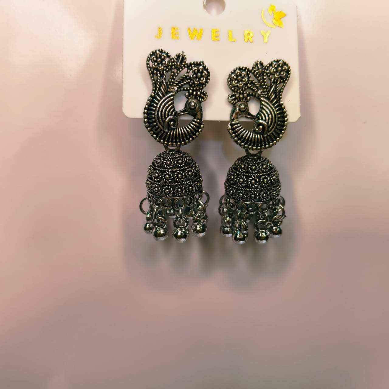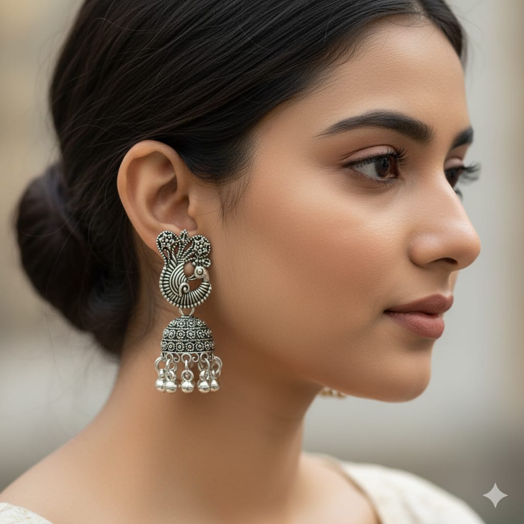 Oxidised Peacock Design Jhumka Earrings for Women & Girls | Traditional Ethnic Jewellery
